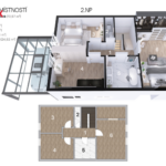 1. NP – 2 pokoje + kuchyňský kout, koupelna, WC, technická místnost, sklad, spíž a terasa.